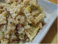 写真では分かりにくいのですが、揚げたおこげをザックリと砕いて、炒飯が完成する直前に混ぜ込んでしまいました。おこげはほとんど米と油ですので、味としては何の違和感もなく、時々「カリッ」と香ばしい風味がします。 |
