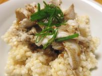 今回は秋がテーマ。鮭とキノコをダシで煮て、鮭は軽くほぐし、ダシにトロミをつけて出来上がりです。シメではなく、立派なメインディッシュの逸品です。 |