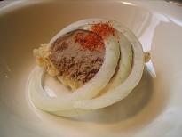 | 「おこげの鬼門」…とも言えそうな洋食。そんな中、ワリに美味しくできたのがコレです。おこげにマッシュポテトを添え、コンソメスープをかけただけ。全てを混ぜてスプーンで食べると優しい味わいのシメのお料理に。コンソメは少し濃いめにした方が良いと思います。 |