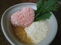 豆腐を潰し、塩や白味噌で味付けし、湯通ししたニンジンやホウレン草と共に、粗めに砕いたおこげと和えます。