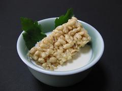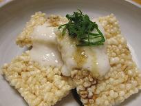 豆乳だけではコクとまろやかさだけですが、おこげが加わることによって、香ばしさと食感が楽しめます。和食店でも違和感を感じさせない一品です。 |